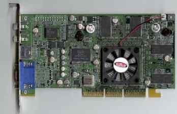 镭使用0.18微米工艺,核心温度相对较低,它的最大功耗大约是8W,比最冷的Geforce2 MX显卡功率大4W,比最热的GeForce 256功耗小8W。所以从照片上看,镭使用的热沉与风扇都不大。